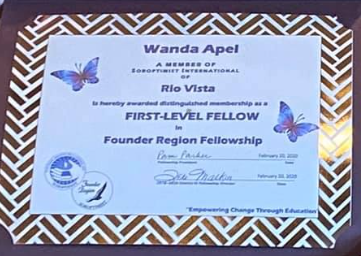In this case, a Soroptimist “Fellow” is a person or club that is indeed a member of an elite group. Every fellow named represents $1,000 in donations to the Soroptimist Founder Region Fellowship Program, which provides scholarships to some amazing women. Over 750 Soroptimist women have become Fellows since 1948. Five hundred women are active members, and many have multiple fellowships and/or have donated fellowships to other Soroptimist women.