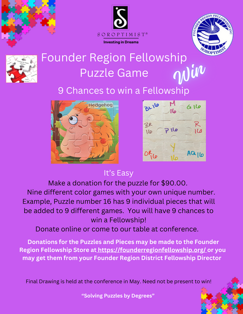 Make a one-time donation or sign up for monthly donations--all donation amounts accepted. Donations can be from clubs, members and non-Soroptimists. Donations may be made in memory of, or in honor of, persons living or deceased.