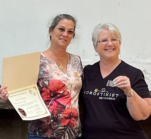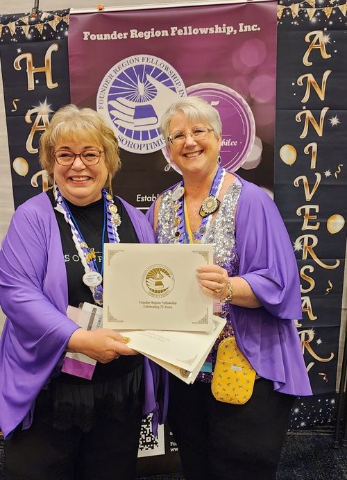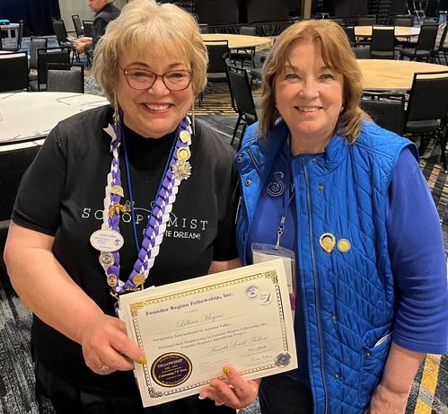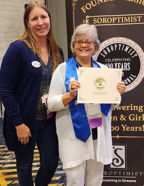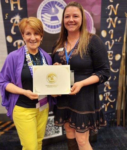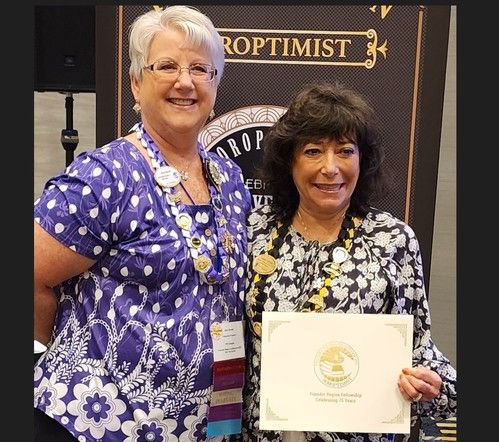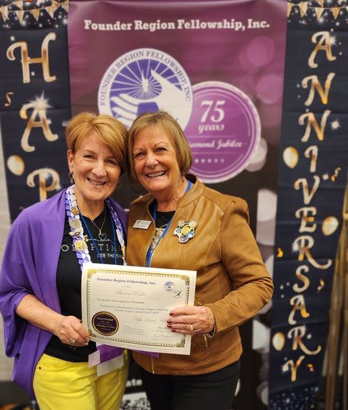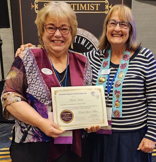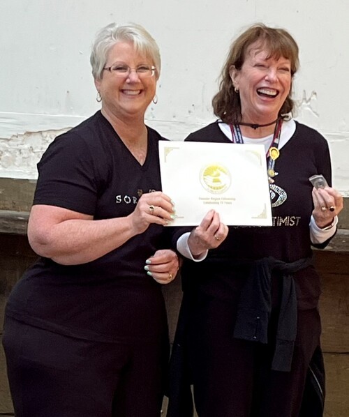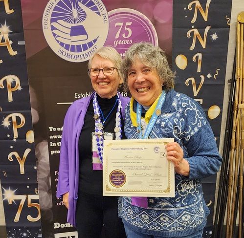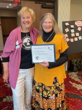 Carol Steele earns her 5th level Fellow at District Meeting, right after getting to 4th level at Conference! Given by D4 Director Tess who is amazed at Carol's great luck!
