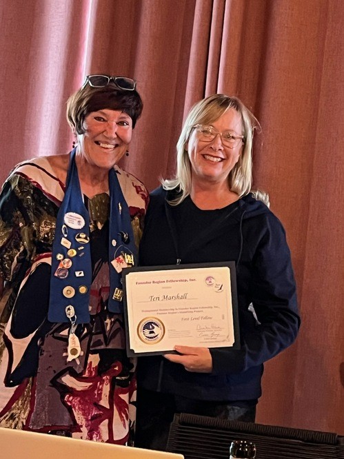 Director Colleen honors Teri Marshall with her first level Fellowship.
